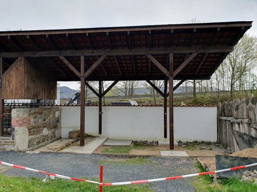 Die Verlängerung eines bestehenden Schutzdachs zur Unterbringung einer Glashütte in der RömerWelt ist über einen Spendenaufruf über die www.heimatleben.de-Plattform der Sparkasse gefördert worden. Hierzu siehe die RömerBlog-Einträge vom 16.01.2023, 5.03.2023 und 1.04.2023. Die restlichen Geldmittel für den Schutzbau wurden von der Stiftung "Caput Limitis" erbracht. Die Fundamente wurden in Eigenleistung mithilfe von Ehrenamtlichen (Dank an Martin Meffert und Murph) erstellt, siehe die Römer-Blog-Einträge vom 4.03.2023, 13.03.2023 und 16.03.2023.