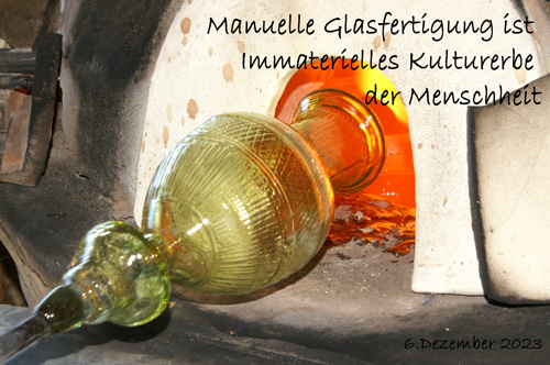 Am 6. Dezember 2023 wurde im Zwischenstaatlichen Ausschuss zum Immateriellen Kulturerbe der UNESCO in Botswana dem von Finnland, Frankreich, Spanien, Tschechien und Ungarn gemeinsam mit Deutschland gestellten Antrag, die "Manuelle Glasfertigung" in die Liste des Immateriellen Kulturerbes der Menschheit der UNESCO aufzunehmen, stattgegeben.